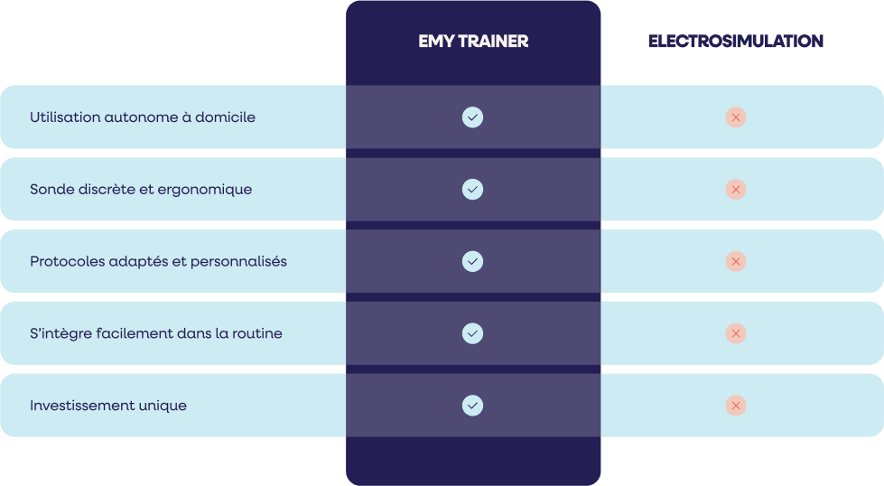 Discover how EMY Trainer revolutionizes perineal rehabilitation: a connected, comfortable and autonomous solution that adapts to your life, where classic electro-stimulation often remains restrictive and not very personalized.